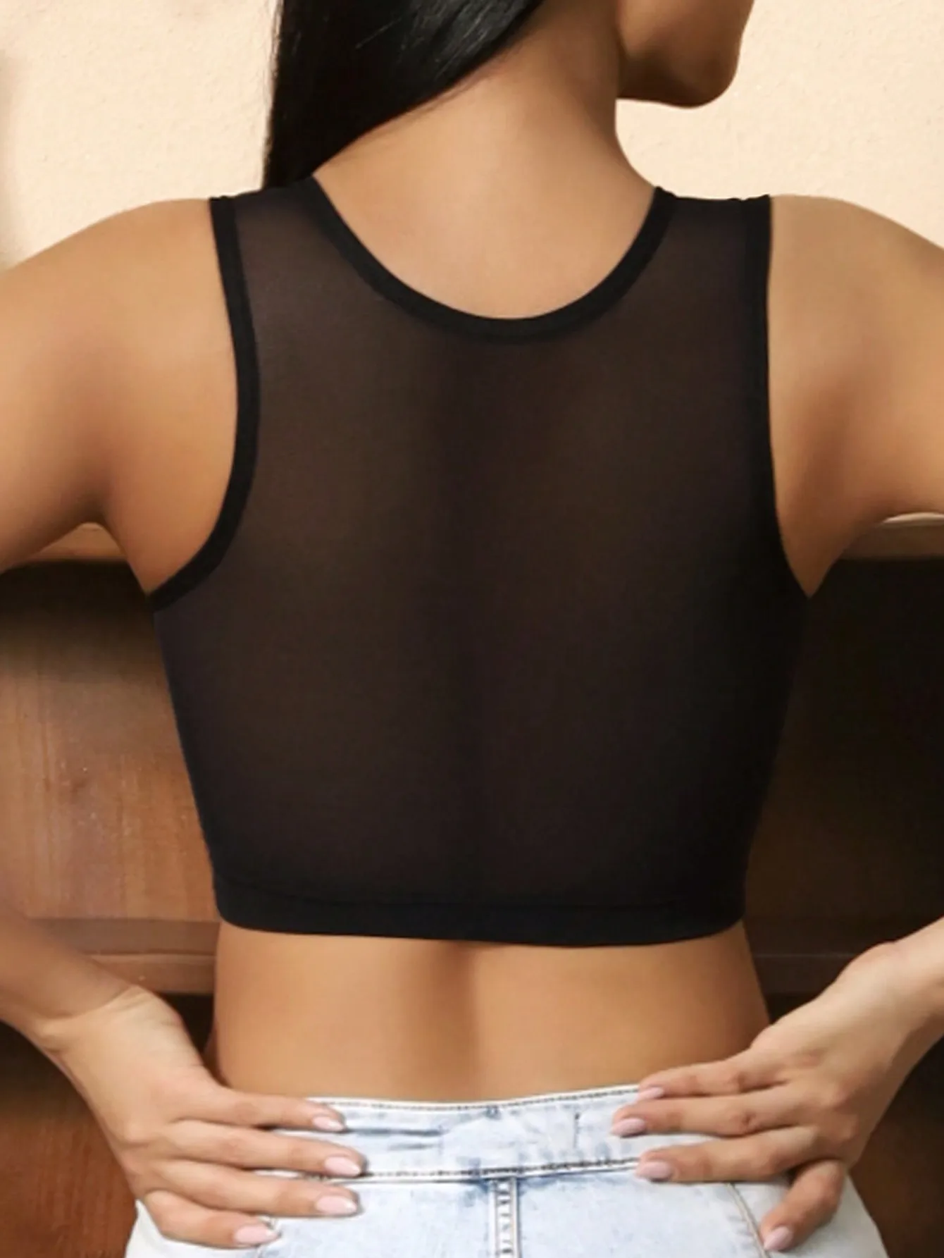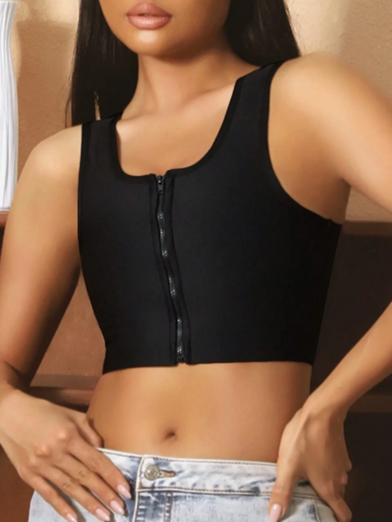 Front zipper chest cinching bra revealing chest small super flat sports vest chest shrinking super flat text bra thin design