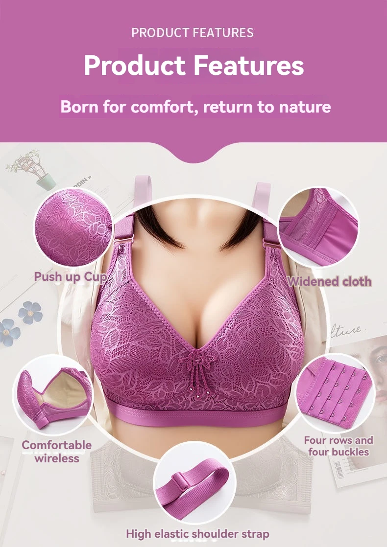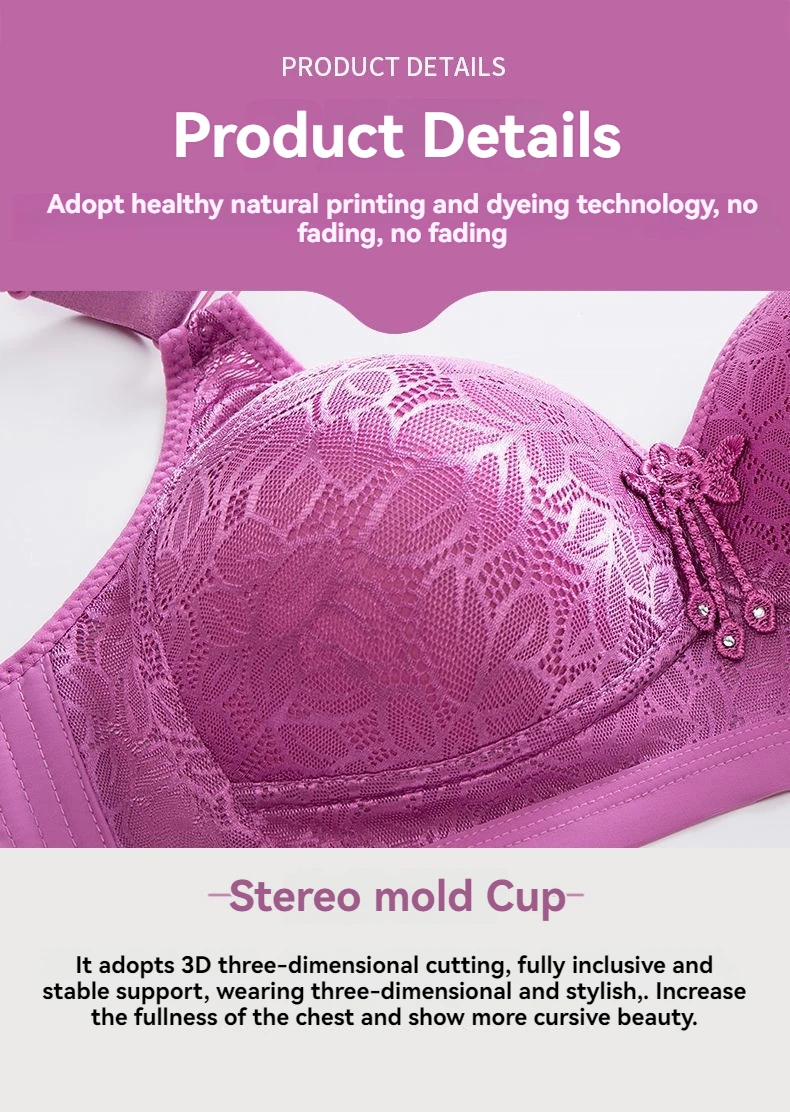 Women's Comfortable Gathering Underwear - Thin, Breathable, Non-Steel Ring Bra, Adjustable for Large Sizes